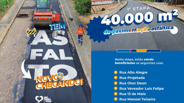 Já teve início a primeira fase do asfaltamento, com 40 mil m2 de pavimentaç&...