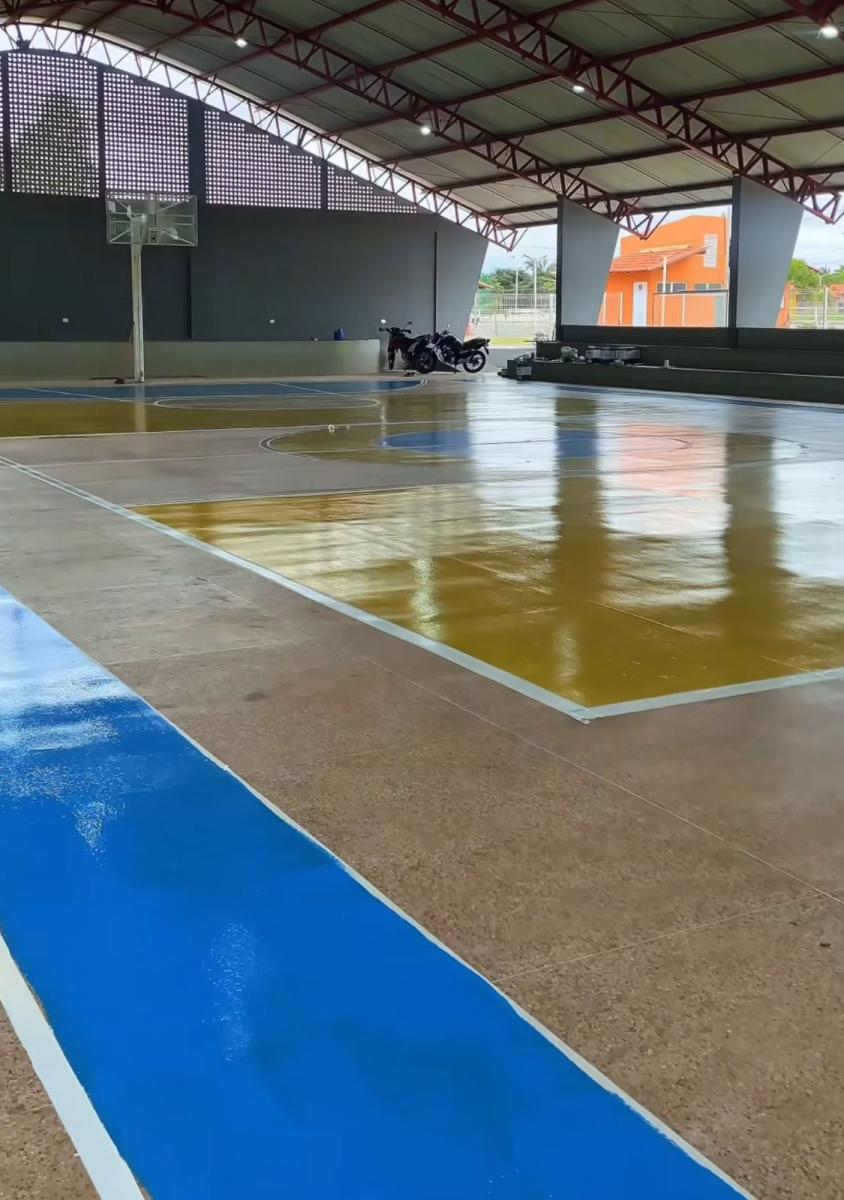 Restauração de piso, pinturas, traves, cestas de basquete e outros acessórios deram uma nova identidade para a quadra.